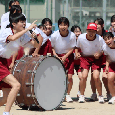生徒たちは、青空の下で一生懸命練習に励んでいます。