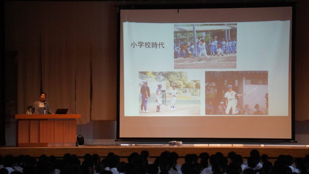 体育館は生徒たちの熱気でとても暑かったのですが、先輩の話を熱心に聞いていました!
