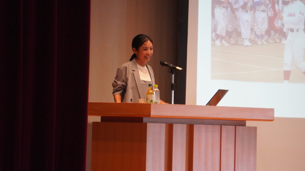 さらに、今年はスペシャルゲストとして熊商の先輩である片岡安祐美氏から「夢ある限り努力は無限」をテーマに学生時代の話しや現在の夢について講演いただきました。