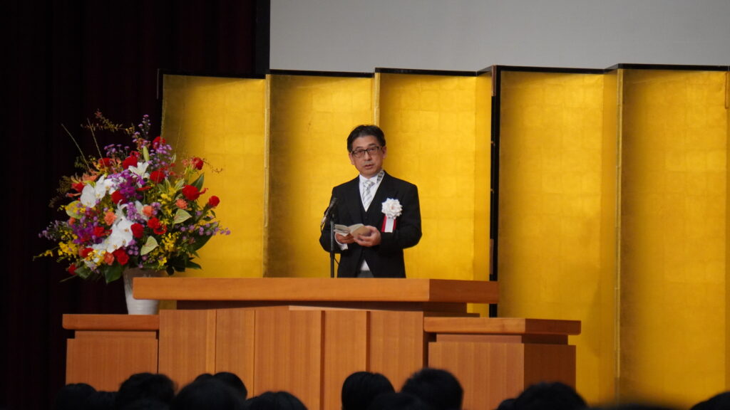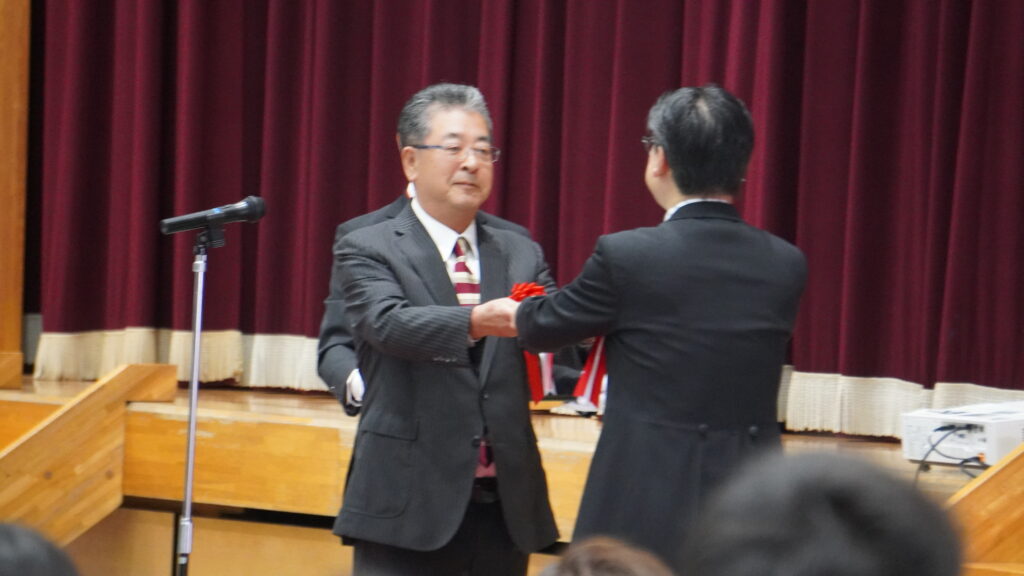 式典前に、同窓会からこのホームページ贈呈式がありました。