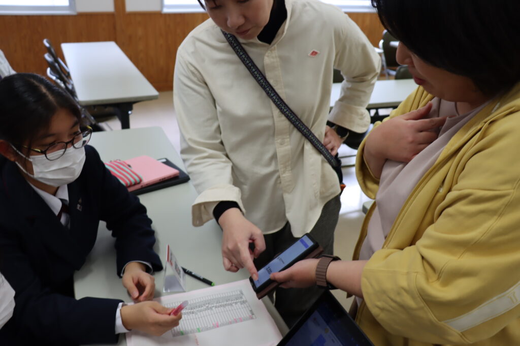 生徒たちは実際に端末を操作しながら、支払い方法の説明やトラブル時の対応など、実務に近い流れを体験しました。
