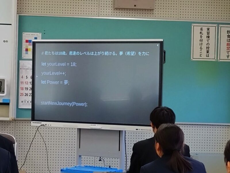 ある先生は、最後の授業で生徒にプログラム言語を使ってエールを送られていました。