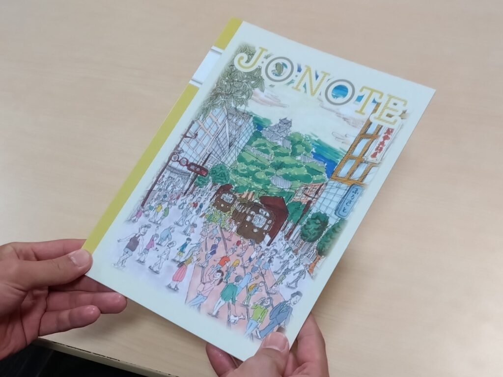 今回のノートはカラーで描かれており、熊本の懐かしさや賑わいそして人の温かさが伝わってくるような作品に仕上がっています。