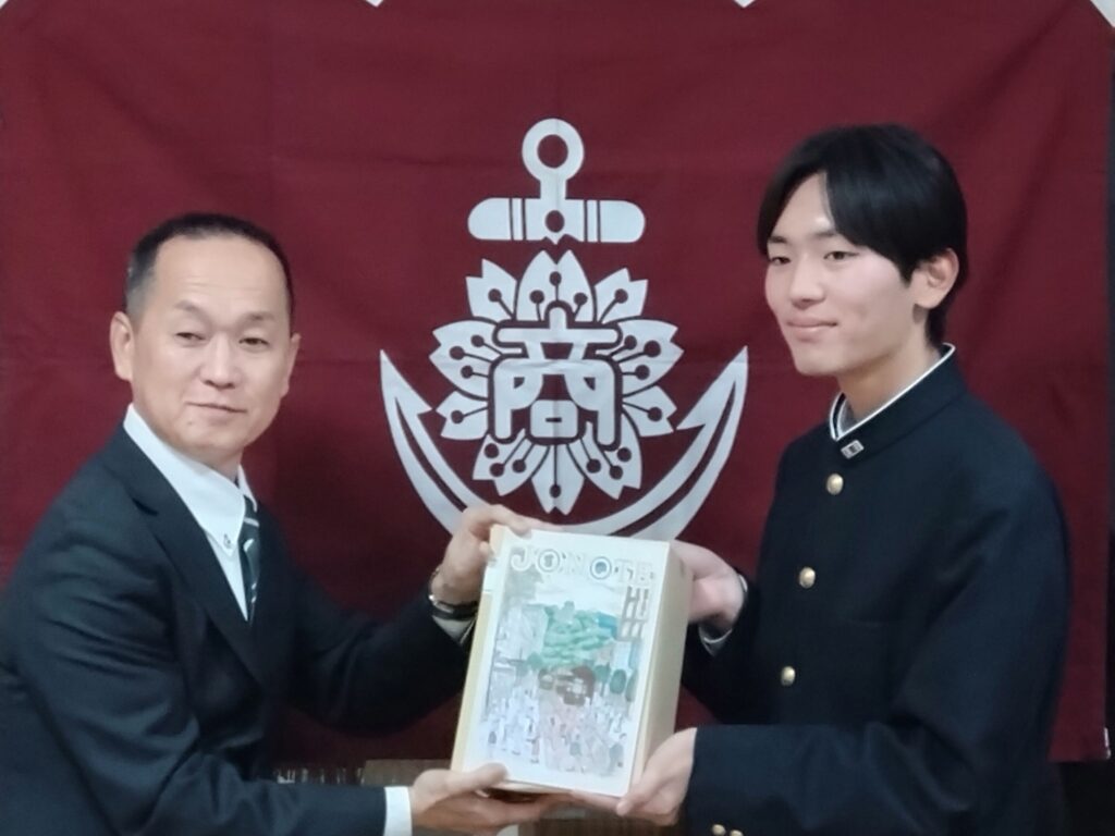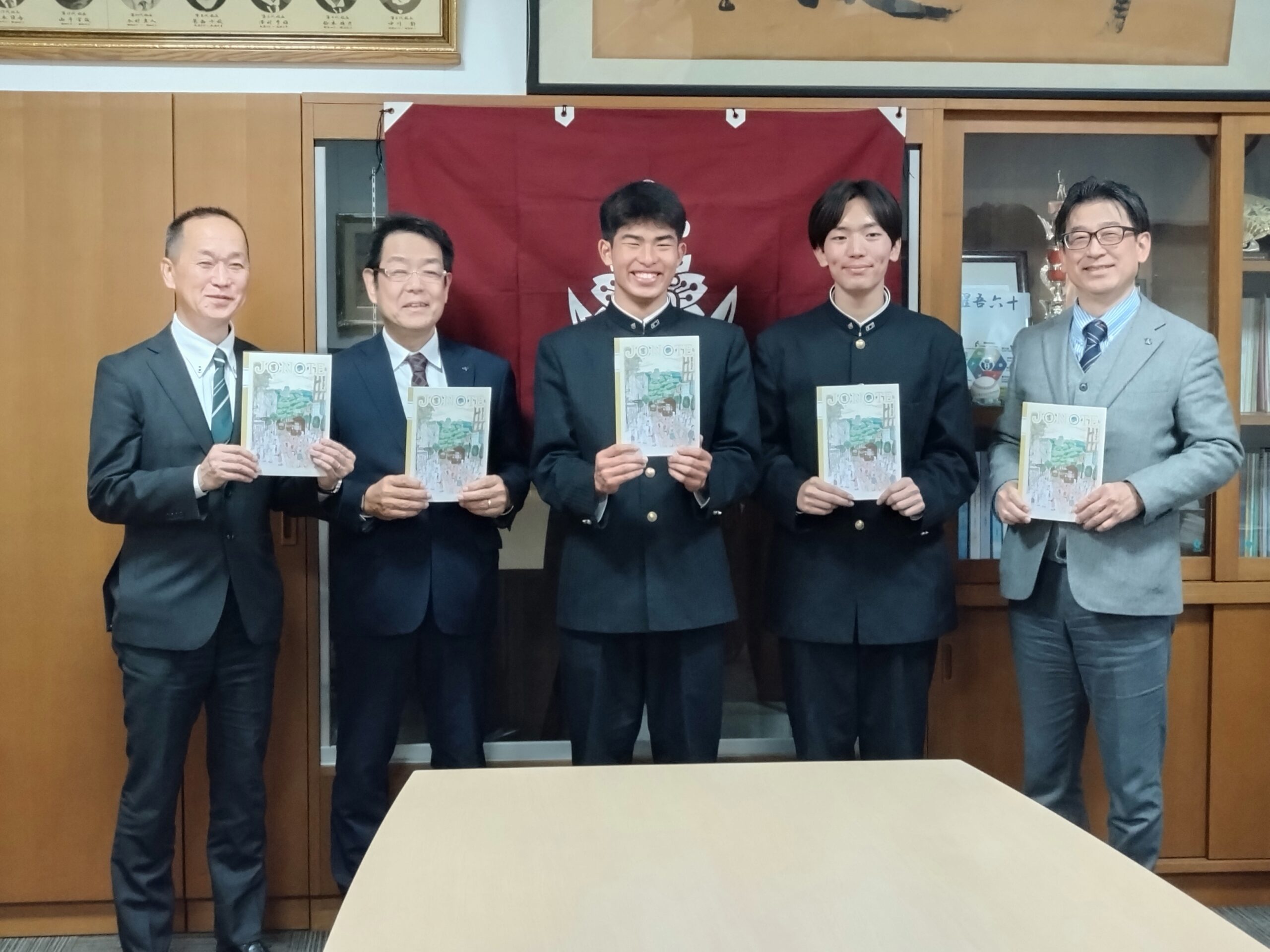 2月10日の16時から校長室で「第8回J・O・NOTE」表紙デザインコンテストの表彰式ならびにJ・O・NOTE贈呈式が実施されました。