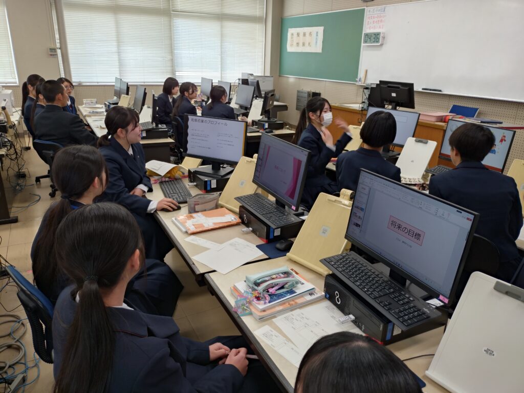 情報処理の授業で、「私の夢」をテーマにプレゼン発表を行いました。