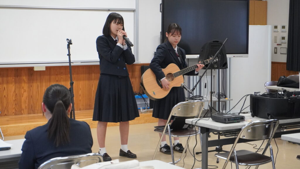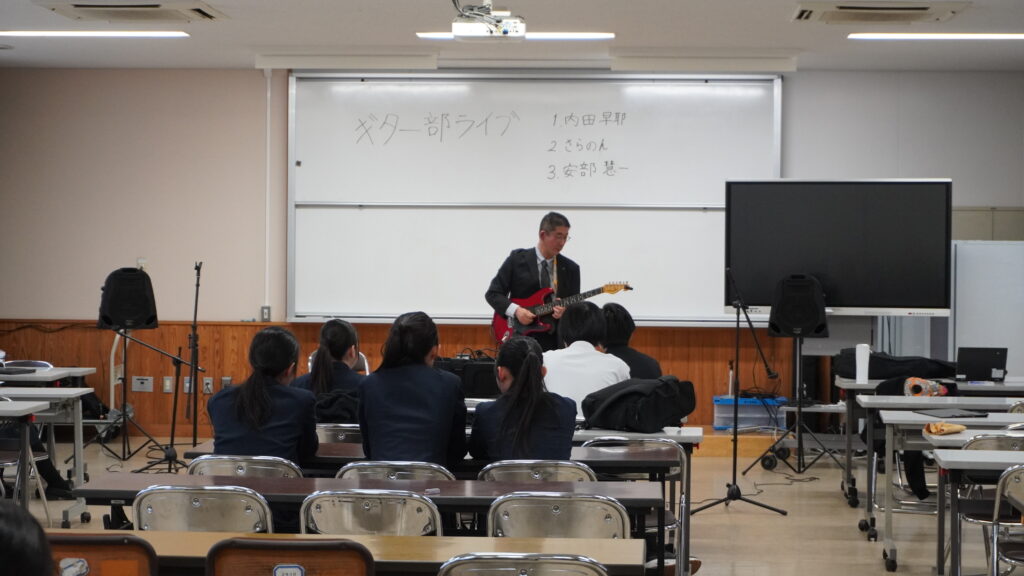 13時30分から第2実践室でギター部ミニコンサートが開催。